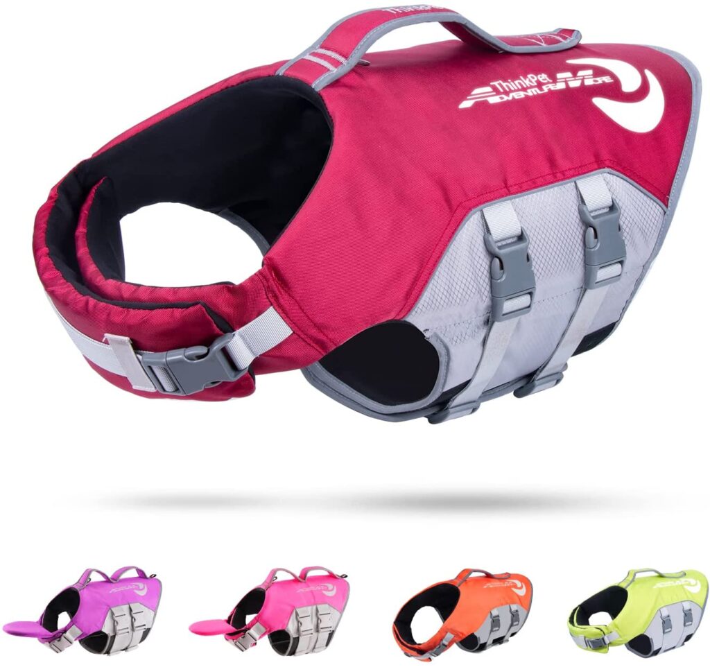 ベルトを調節してフィット感よく装着できるものや、引き上げやすいハンドル付きのもの、パネルによって顔が濡れないものなど、さまざまな「犬用ライフジャケット」が展開されています。