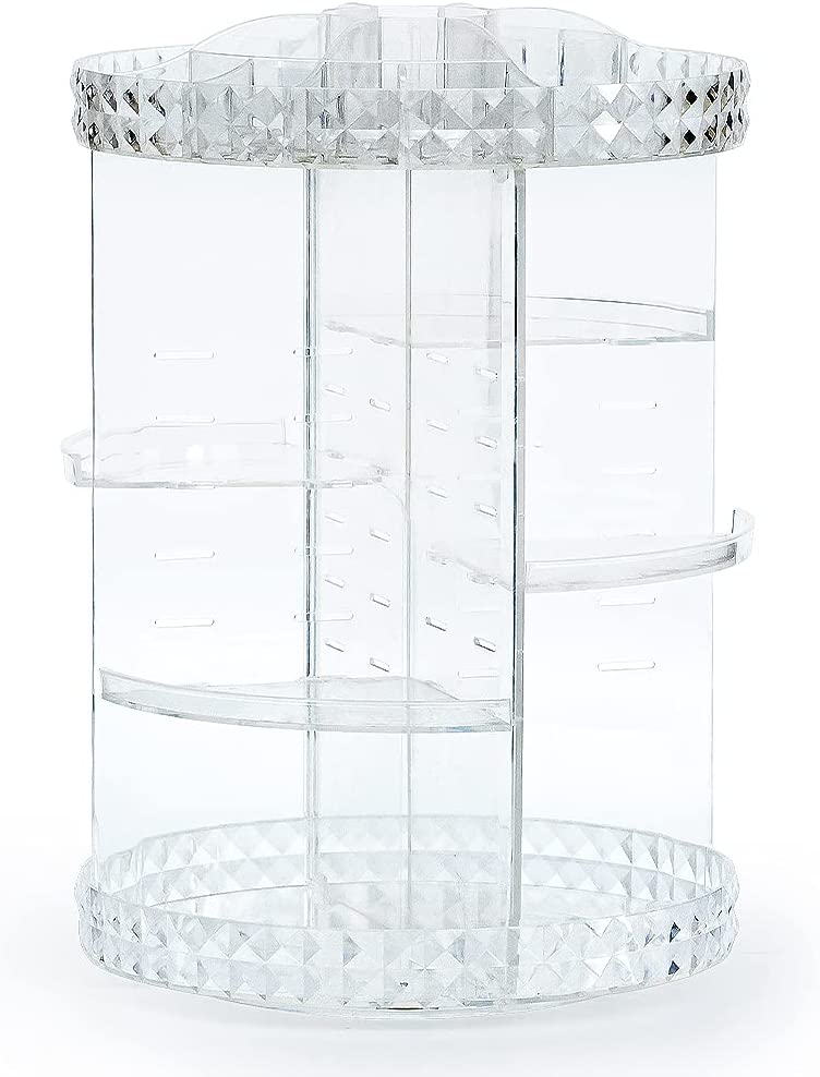 クリア素材で中のものが見えやすく、収納量も多いのでメイク道具などと一緒に香水を収納できます。
