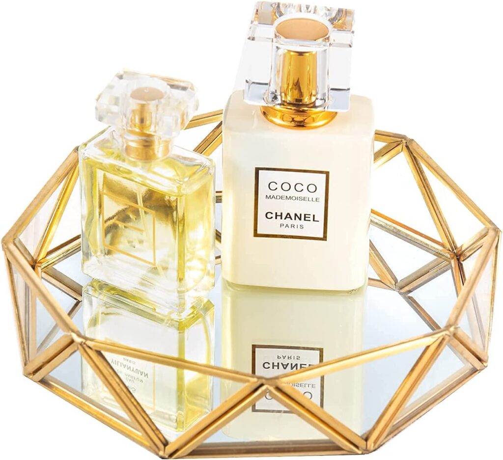 ミラーに反射した光がキラキラ輝き、ディスプレイした香水をおしゃれに見せてくれます。