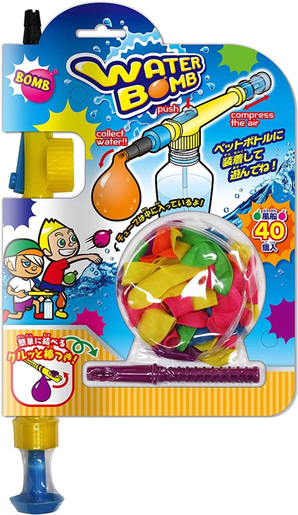 大量の水風船を一気に膨らませることができるものや、シリコン製で割れないもの、口が自動で閉まるものなど、さまざまな「水風船」が展開されています。