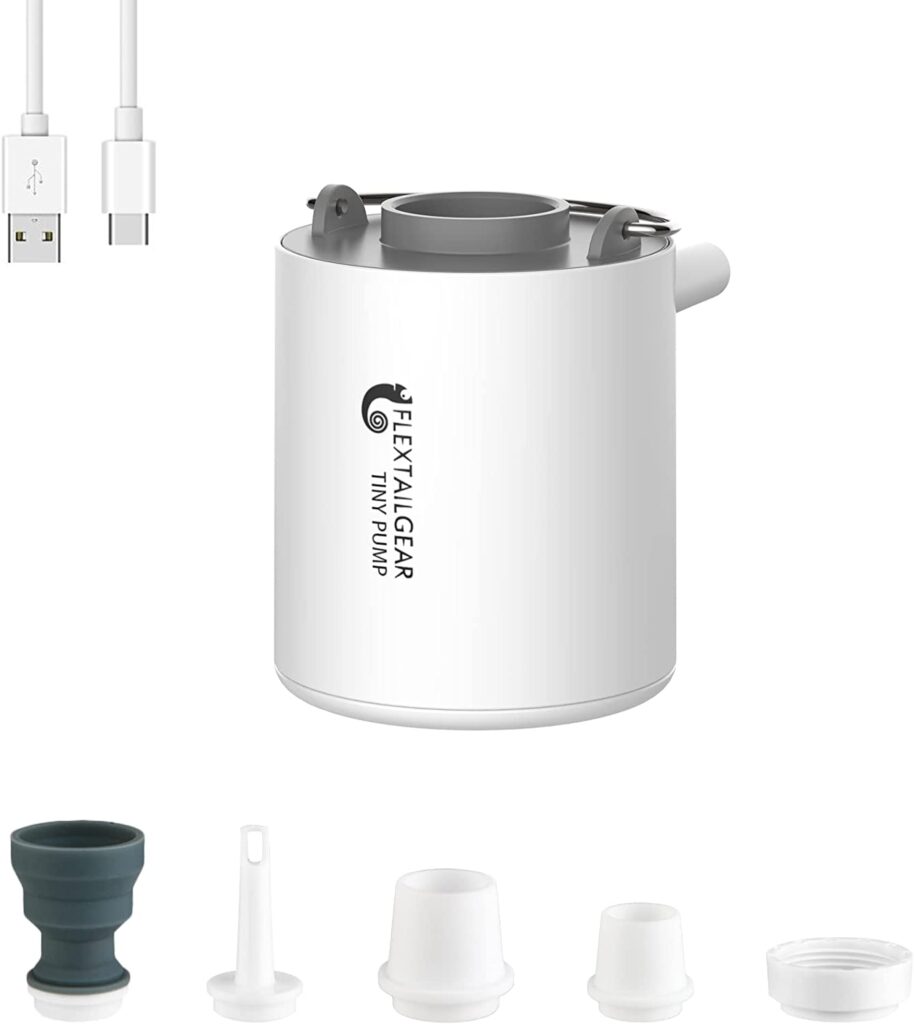 空気を入れるときは充電式のエアーポンプを使うと、短時間で簡単に膨らませることができます。