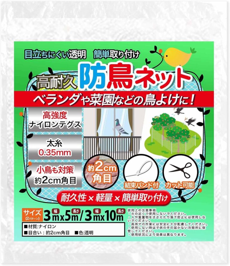 くちばしを通しにくい小さな網目で、糸の強度が高いのでちぎれにくいです。