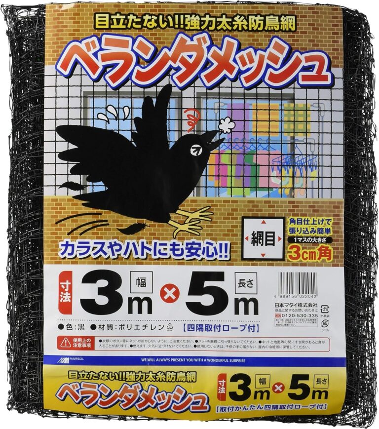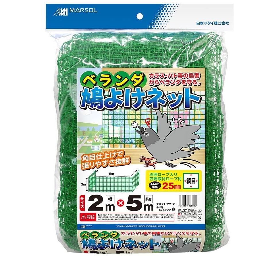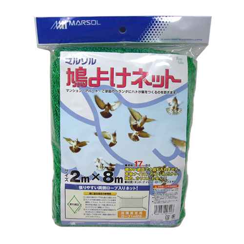 DCM(ホームセンター)では、『マルソル 鳩よけネット 2×8m』や、『マルソル ベランダ鳩よけネット 2×5m』などの「鳩よけグッズ」が販売されています。