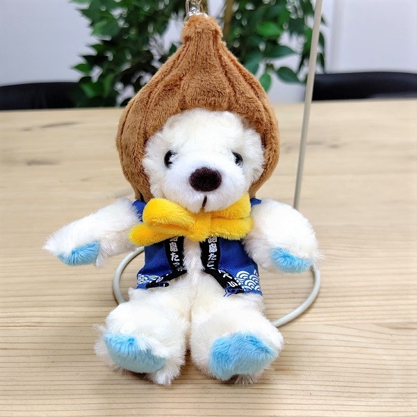 ふわふわのテディベアが、淡路島の特産品、玉ねぎのかぶりものをしたかわいいキーホルダーです。