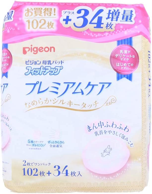 上でもご紹介した「ピジョン 母乳パッド フィットアップ プレミアムケア 136枚入」と同じピジョンから販売されています。