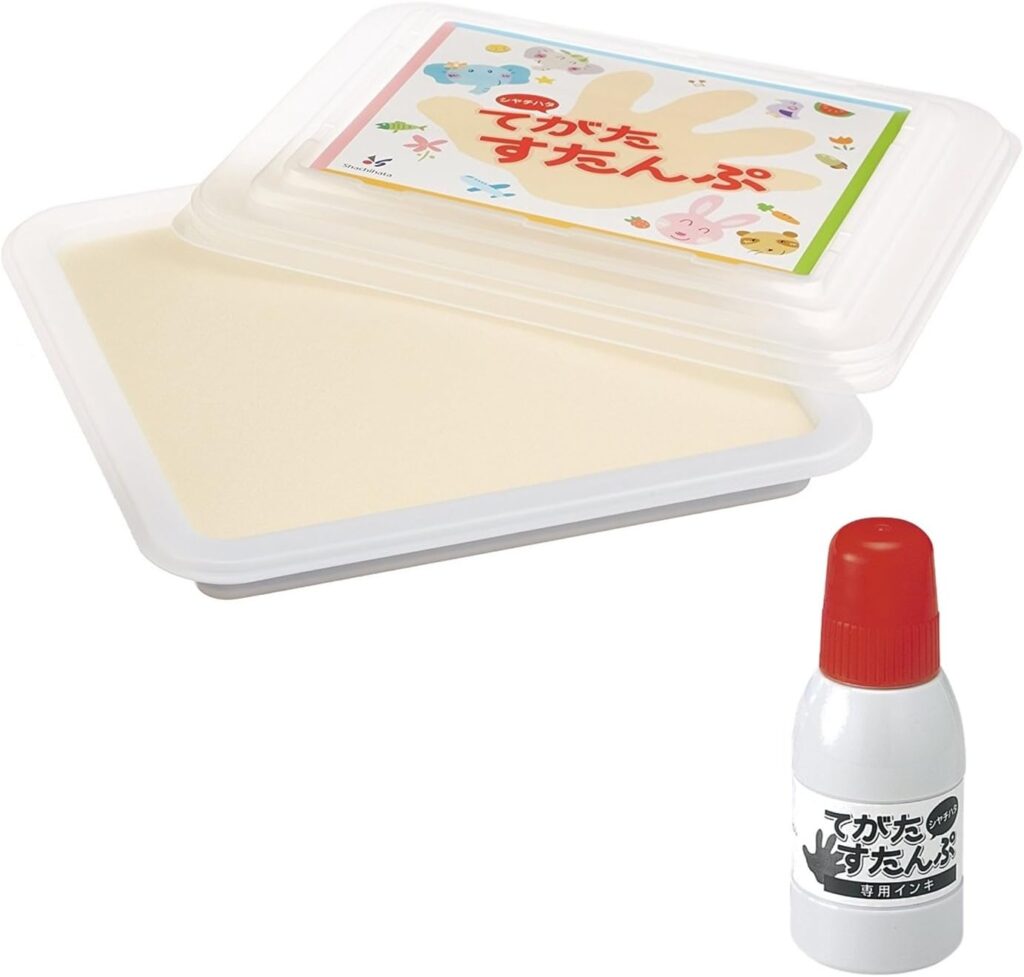 水で簡単にインクが落ちる〝シャチハタ〟製のものや、プレゼントに最適なもの、家族全員の手形を1枚に残すことができるものなど、さまざまな製品が展開されています。