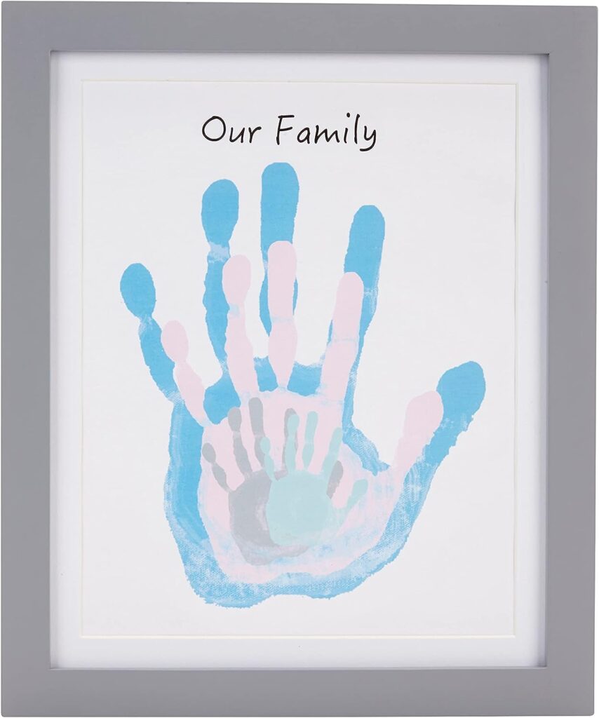 フレームのサイズが大きく、色の組み合わせが自然なので、4人家族一人ずつの手形を1枚に合わせることができます。