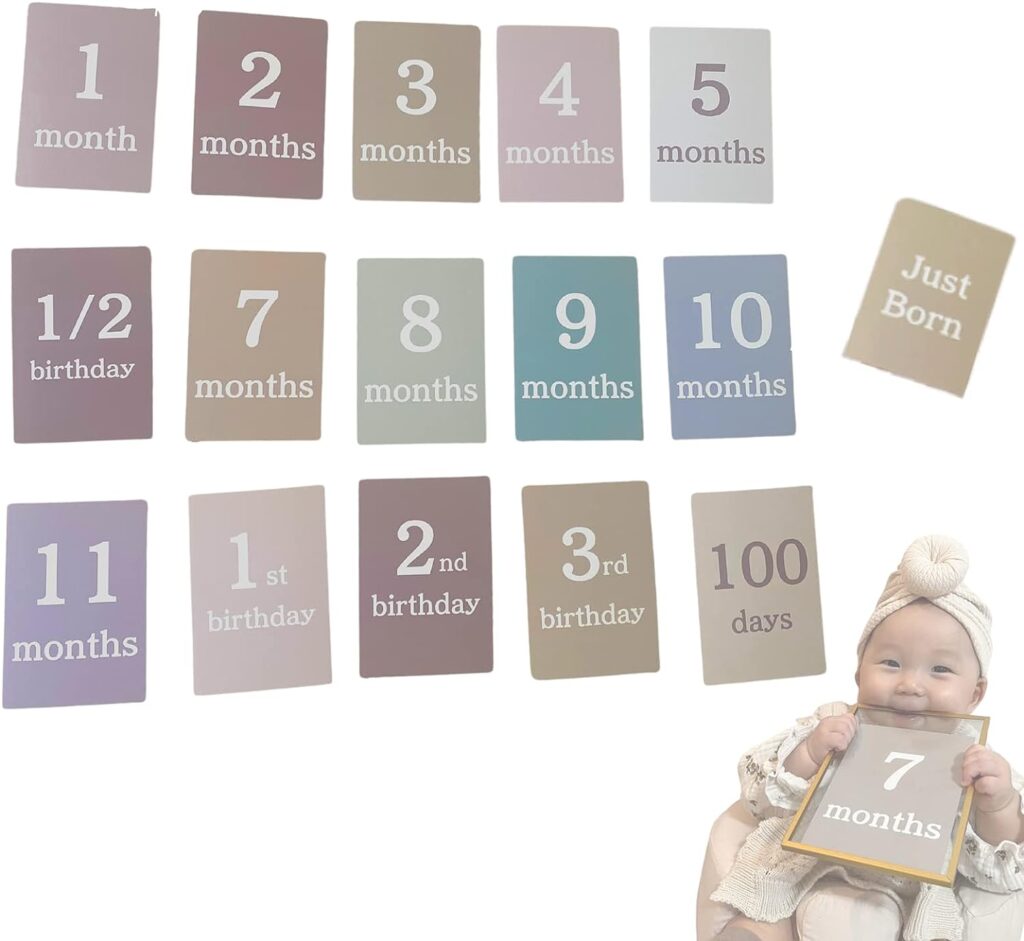 カラフルな色使いがおしゃれなものや、丈夫で破れにくいもの、光を反射しにくく撮影しやすいものなど、さまざまな「マンスリーカード(月齢カード)」が展開されています。