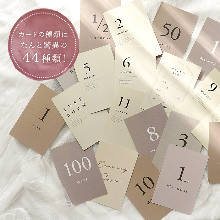赤ちゃんの成長記録をおしゃれに残すことができる「マンスリーカード(月齢カード)」。