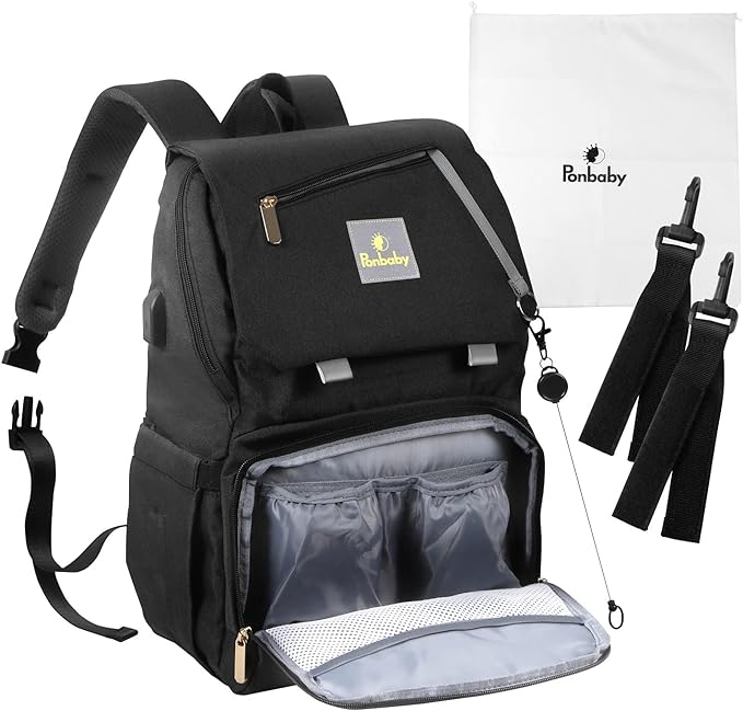 哺乳瓶いれるポケットやUSBポート、いろんな場所にポケットがあって小物もしまいやすくていっぱい荷物はいりました。