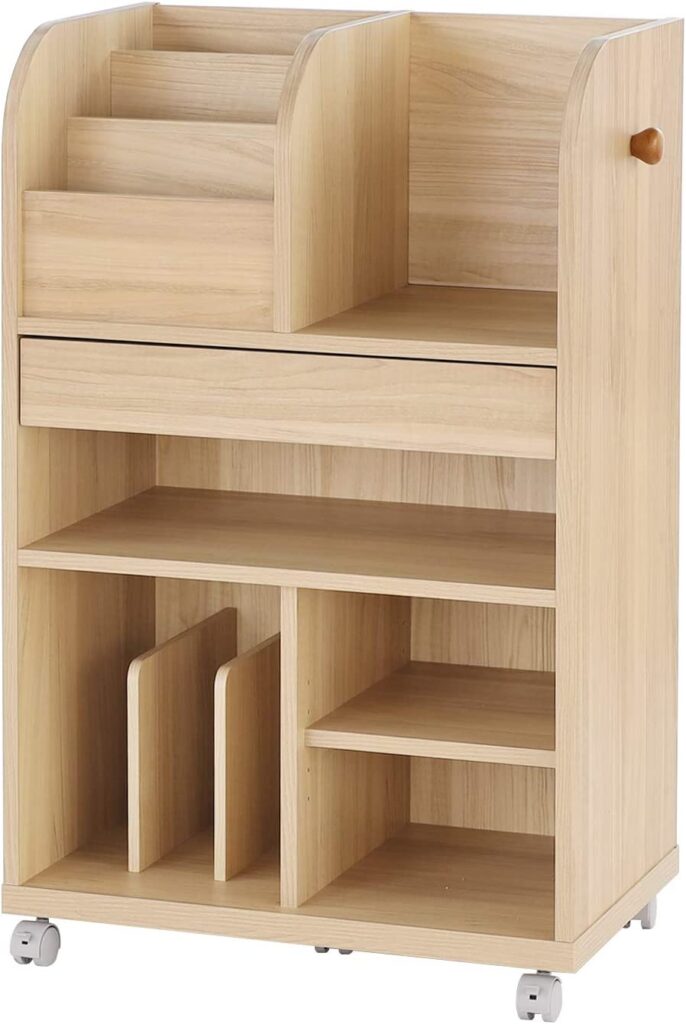 ラック内の仕切りが多く、引き出しも備わっているため、教科書や文房具などアイテムごとに収納しやすいです。
