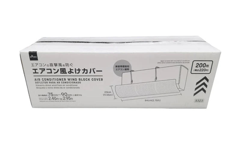 ダイソー(100均)では、『エアコン風よけカバー』が販売されています。