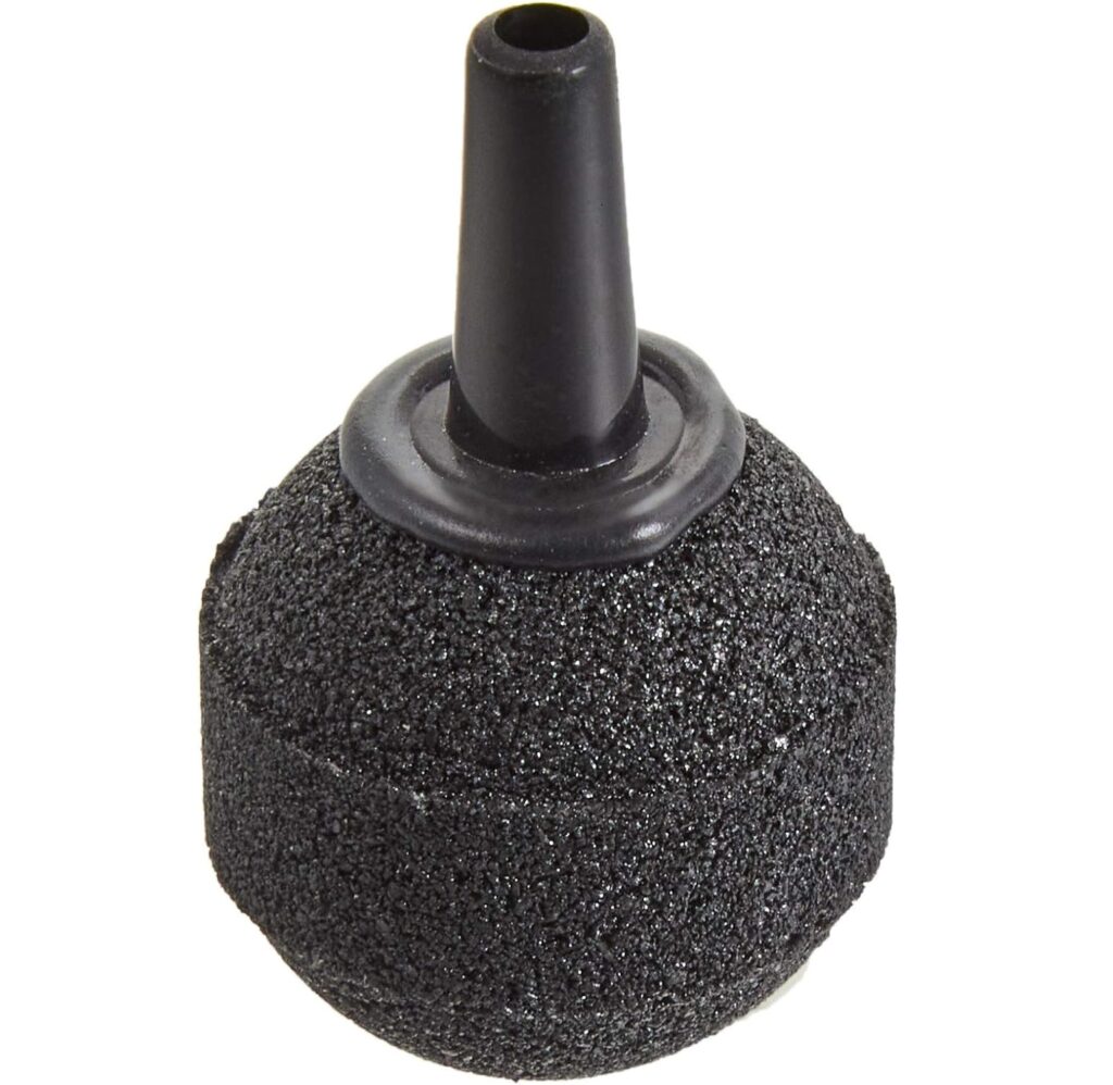 水槽の中に、酸素を供給するための「エアーストーン」。