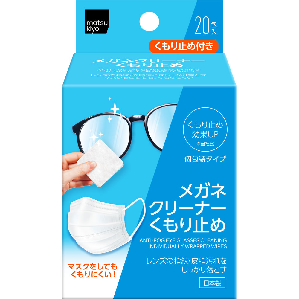 マツキヨ(ドラッグストア)では、『matsukiyo メガネクリーナー 曇り止め付 20包』や『ソフト99コーポレーション メガネのくもり止め濃密ジェル 10g』などの「メガネ用曇り止め」が販売されています。