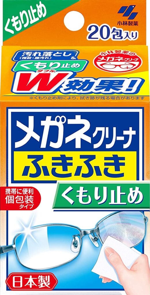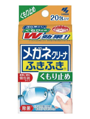 続いては、持ち運びしやすい、使い捨てタイプの「メガネ用曇り止め」。