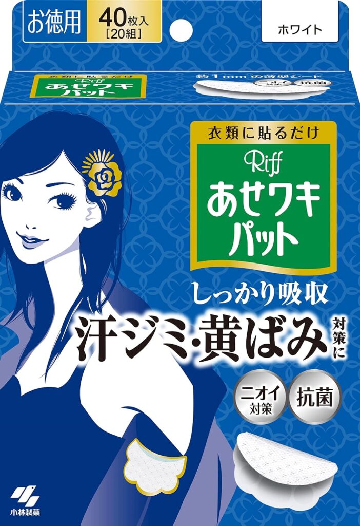 マツモトキヨシ(薬局)では、ドンキホーテでも販売されている『Riff あせワキパット』という「脇汗パッド」が販売されています。
