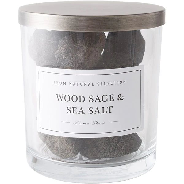 缶の中に、陶器製のおしゃれな「アロマストーン」が入っています。