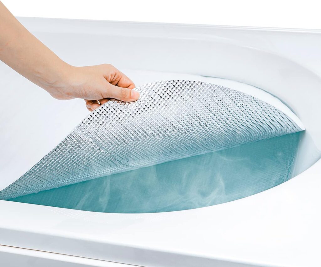 湯舟に張ったお湯の温度が下がるのを防ぐ「お風呂の保温シート」。