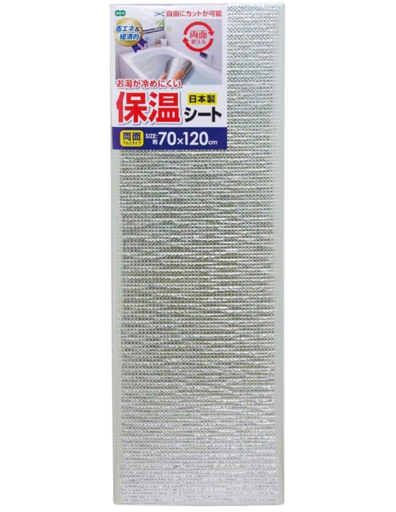 ダイソー(100均)では、『アルミ保温シート』が販売されていて、「お風呂の保温シート」としておすすめです。