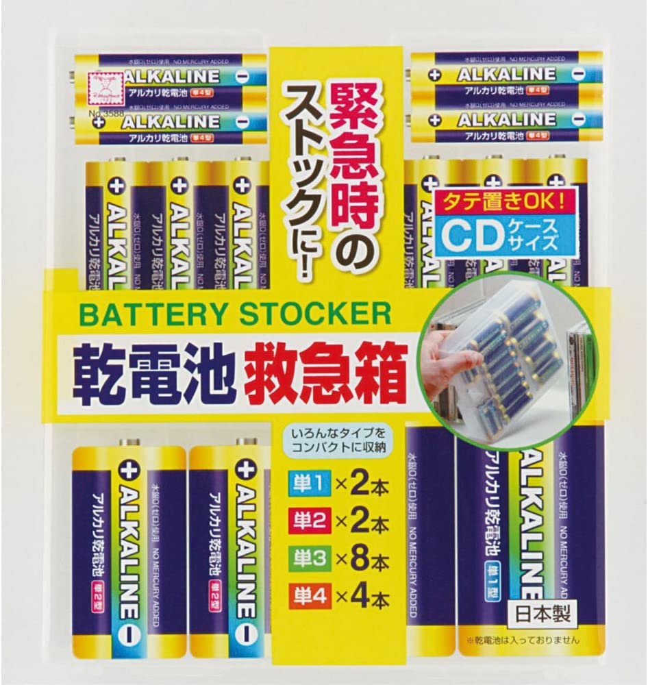 単一、単三、単四など、さまざまな種類の電池がたくさん収納できるので、いざというときに役立ちます。