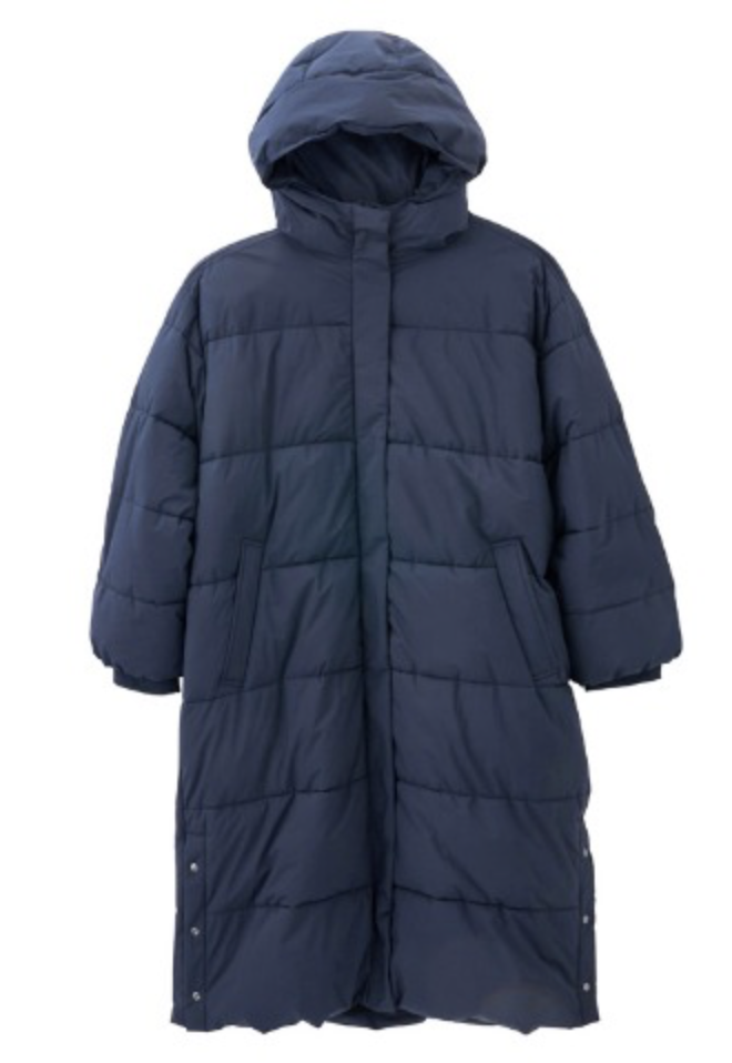 ユニクロでは、『シームレスダウンロングコート』や『パフテックオーバーサイズコート』などが販売されていて、レディース向けの「ベンチコート」としておすすめです。