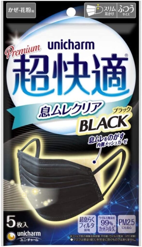 続いては、フィルター性能が高い「黒マスク(不織布)」。