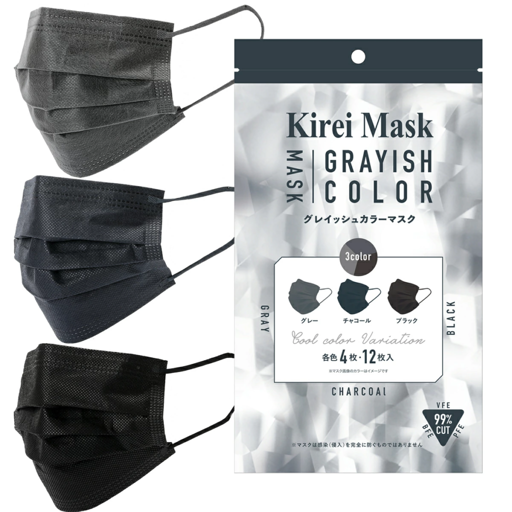グレー・チャコール・ブラックの3色の不織布マスクがそれぞれ4枚ずつ入って、価格は¥110(税込)。