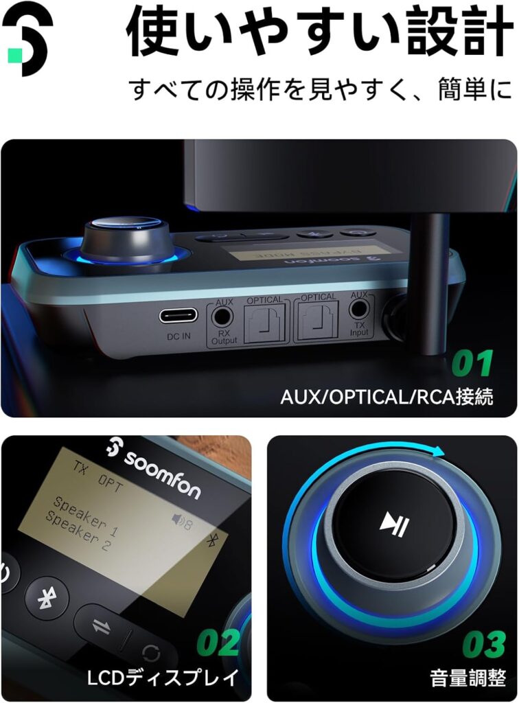 4.SOOMFON Bluetooth トランスミッタ レシーバー