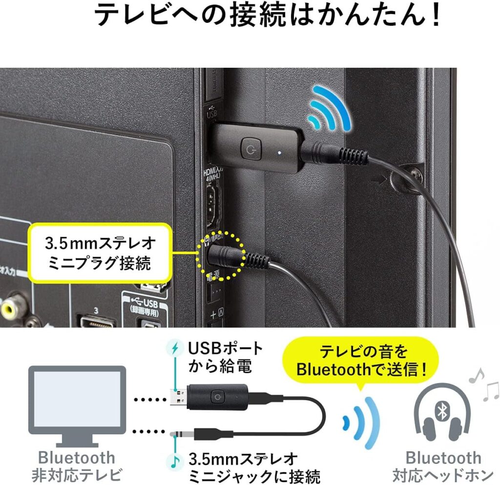 Bluetooth非対応のテレビとBluetooth対応のヘッドホンを接続できます。