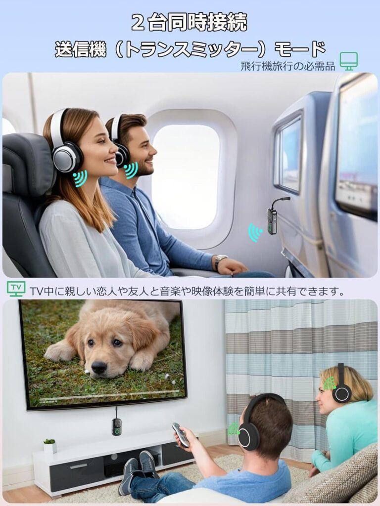 送信モードでは、テレビ・パソコンなどから、2台のデバイスに同時に接続できます。