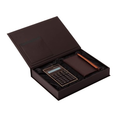 デザイン性に優れたamadana電子計算機シリーズの電卓と、専用のレザーケースがセットになっています。