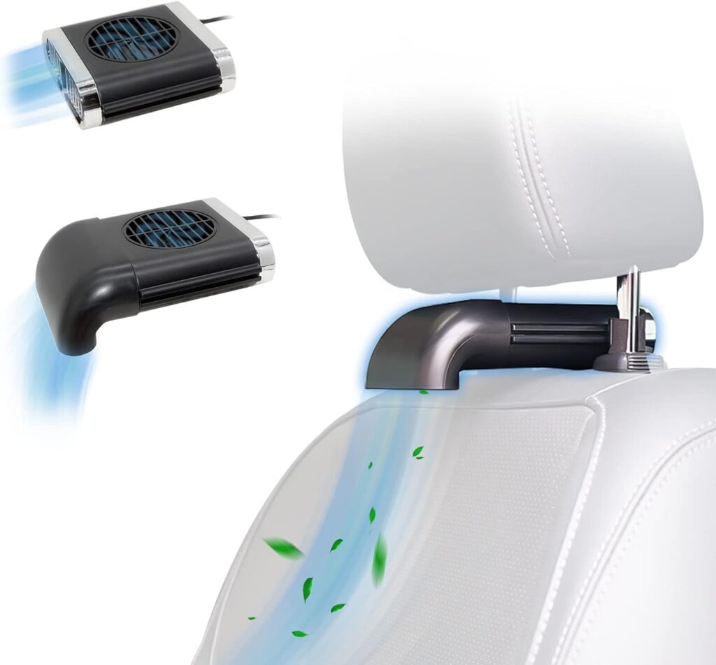 ヘッドレストに取り付ければ、首元から背中に涼しい空気を送ってくれます。