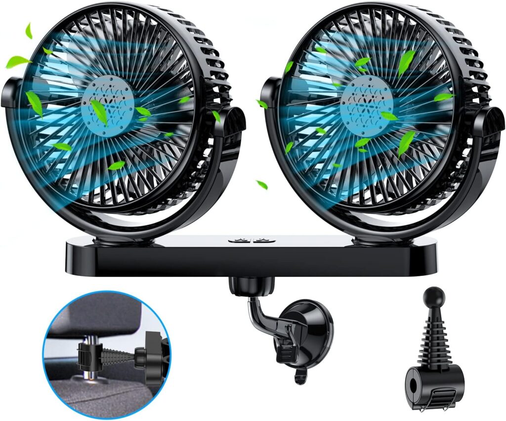 1.Amison 車載扇風機 USBポート付き 3階段風量調節