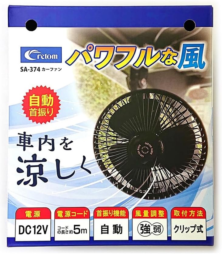 オートバックスでは、『cretom(クレトム) カーファン SA374』という「車用扇風機」が販売されています。