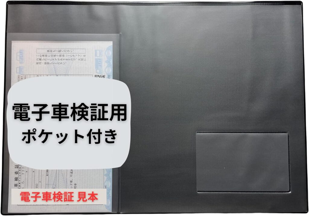 下画像のように、電子車検証がぴったりと収まるクリアポケットが付いています。