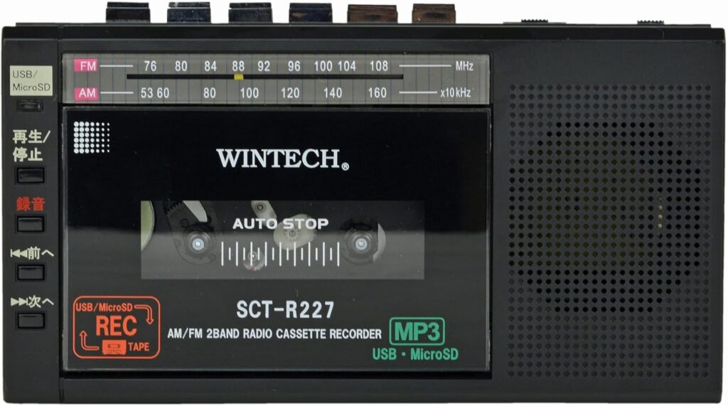 CDやラジオ放送の再生だけでなく、カセットテープに録音することもできます。
