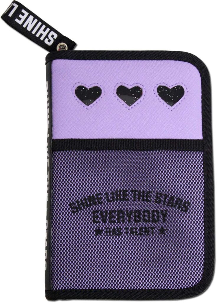 ラウンドファスナーで大きく開き、内側にはポケットが備わっています。