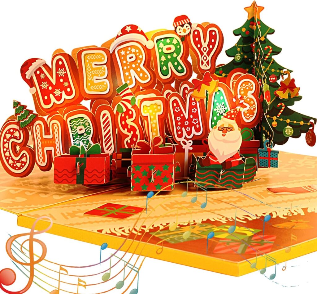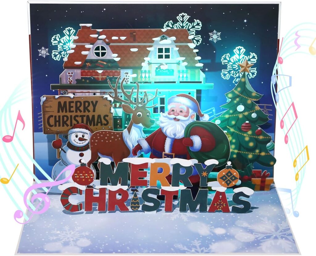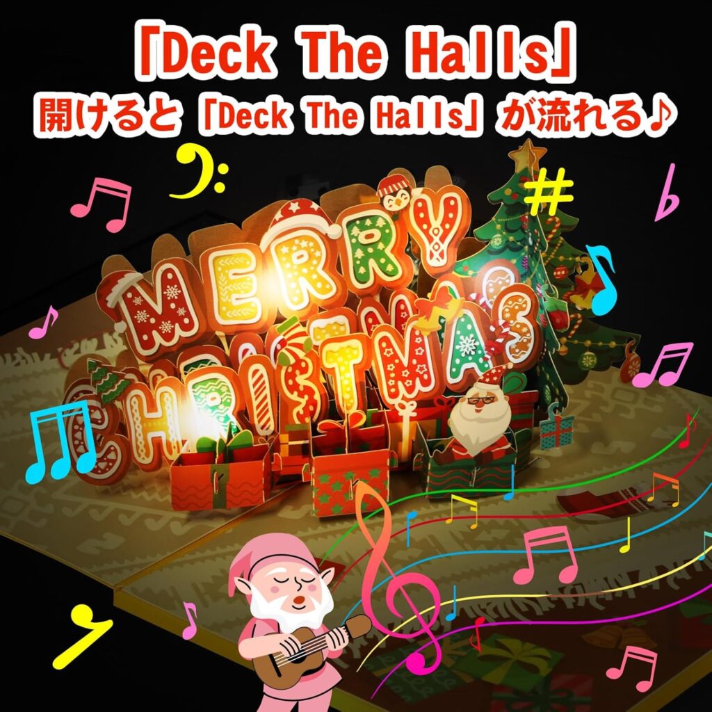 3.Kesote クリスマスカード 光る 立体 音楽付き