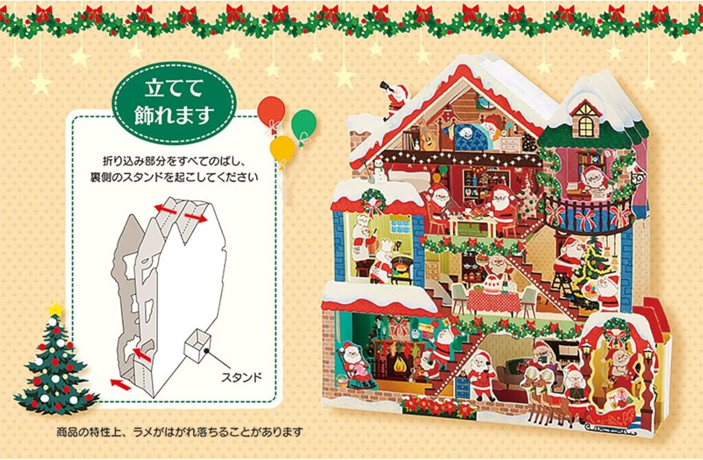 デザインは、サンタドールハウスのほか、ふかふかトイプードル・白い枠にツリーなど、豊富に展開されています。