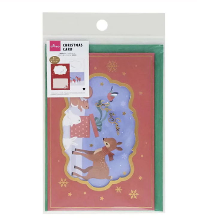 ダイソー(100均)では『ポップアップクリスマスカード』や『透明窓付クリスマスカード』などが販売されています。