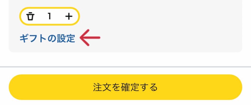 支払いの設定を済ませて、「注文を確定する」ボタンのすぐ上にある「ギフトの設定」をクリックします。