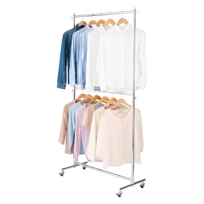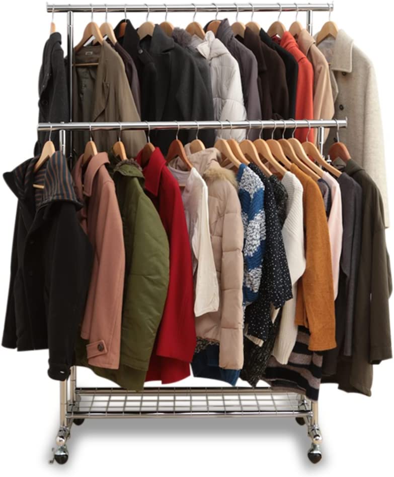 続いては、縦2段に掛けられる、スリムで丈夫な「キャスター付きハンガーラック」。