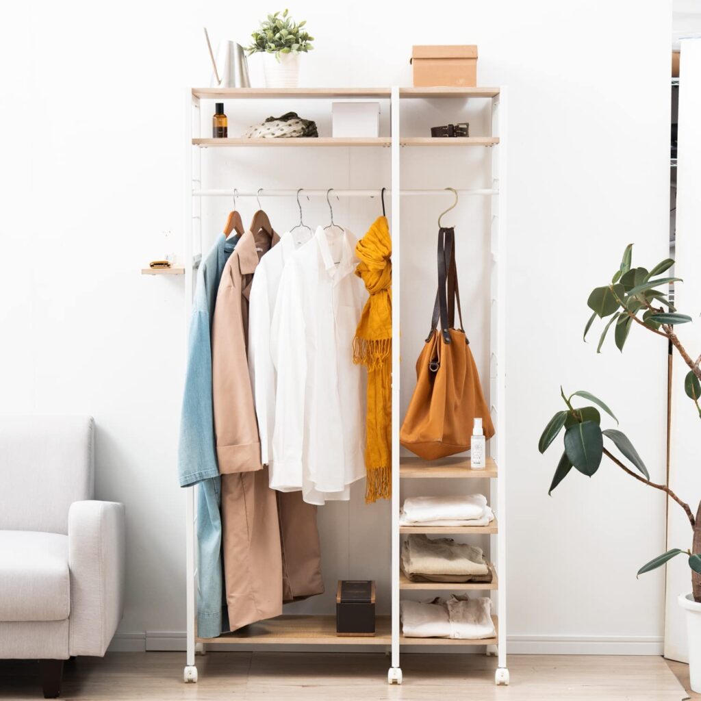 ハンガーにかけた衣類を収納でき、移動も簡単な「キャスター付きハンガーラック」。