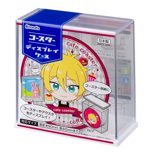 一般的な紙製のキャラクターコースター(直径9cm)が、スクエア型、ラウンド型どちらもぴったり収納できます。
