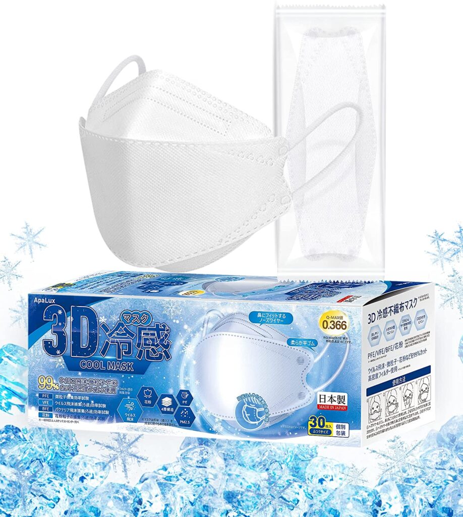 続いては、日本製で3D立体型の「冷感マスク(不織布)」。