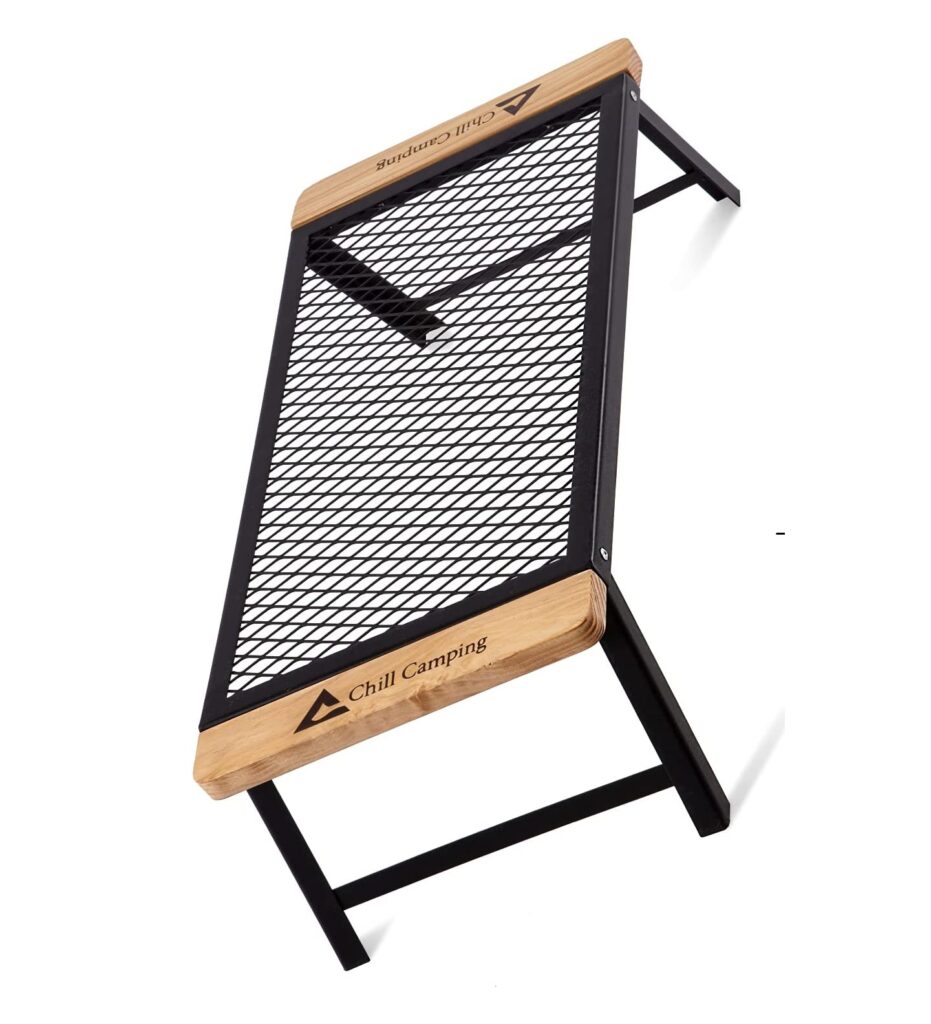 メッシュなので水切りにも良く、焚き火の近くに配置しても問題ないしもちろん熱い鉄板もおける