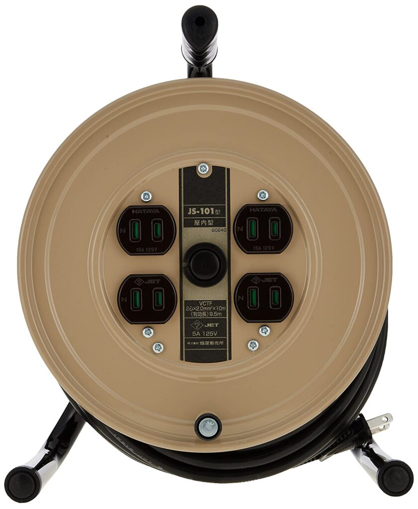 コンセントから遠く離れた場所で電気を使用したいときに便利な「コードリール」。