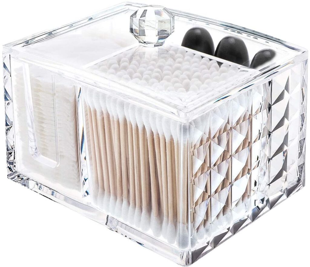 仕切り付きで、コットンや綿棒などを分けて収納できるのが特徴。
