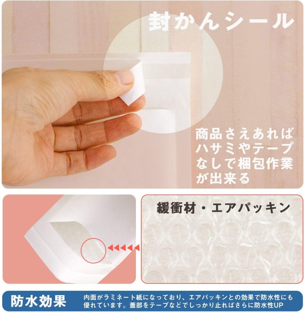 封かんテープとエアーキャップが内側に備わっているので、梱包の手間がかかりません。