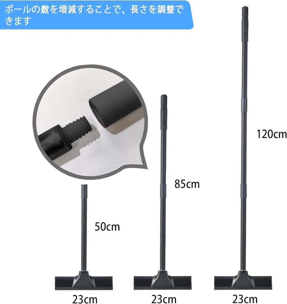 ブラックとホワイトのブラシ幅は23cmで、柄の長さは50~120cmの間で3段階に調整できます。
